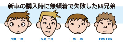 「にこちゃん」のように、新車購入で失敗や後悔しないためにも、四兄弟や四姉妹の失敗事例は見ておいた方が良いですね!